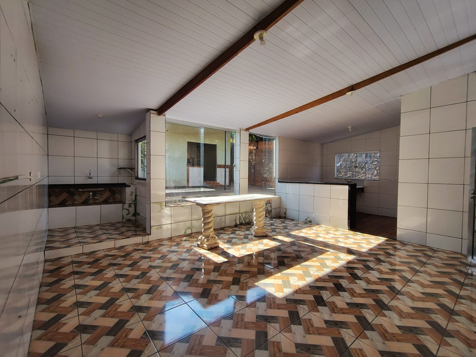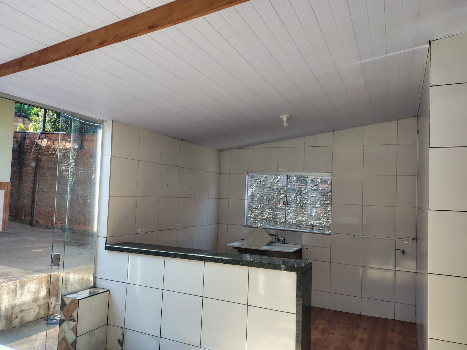 • Edícula com quarto, banheiro e uma área gourmet com churrasqueira e pia, área coberta.